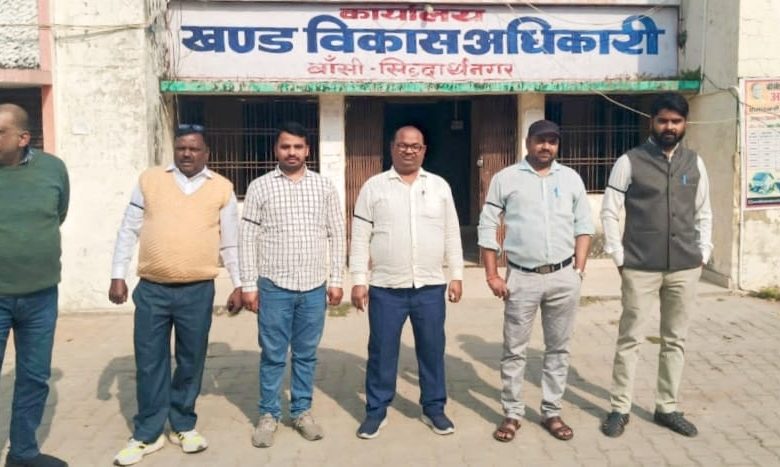 बांसी/सिद्धार्थनगर। विकास खण्ड बांसी कार्यालय के कर्मचारियों ने ऑनलाइन हाजिरी व्यवस्था के विरोध में सोमवार को शान्तिपूर्ण धरना प्रदर्शन किया। वहीं विरोध प्रदर्शन में सभी कर्मचारियों ने अपनी बांह पर काली पट्टी बांधकर असन्तोष दर्ज कराया। कर्मचारी नेताओं ने बताया कि ऑनलाइन हाजिरी व्यवस्था जमीनी हकीकत से मेल नहीं खाती और ग्रामीण क्षेत्रों में नेटवर्क की समस्या के कारण कर्मचारियों को बेवजह परेशान होना पड़ रहा है। इस दौरान विरोध प्रदर्शन में प्रमुख रूप से अजय राय, महमूद अली, मनीराम वर्मा, अभिनव शुक्ला, प्रशान्त प्रजापति, अनुराग पाण्डेय समेत अन्य कर्मचारी मौजूद रहें। वहीं कर्मचारियों ने चेतावनी दी है कि यदि मांगें पूरी न हुईं तो आन्दोलन को आगे और तेज किया जायेगा।