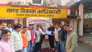 सचिवों का शान्ति पूर्ण सत्याग्रह आन्दोलन खंड विकास अधिकारी को सौंपा ज्ञापन,,करमा/सोनभद्र