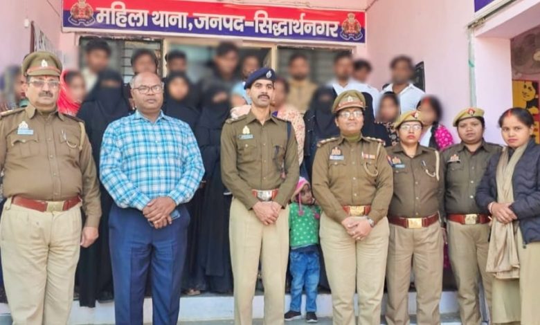 सिद्धार्थनगर। पुलिस अधीक्षक सिद्धार्थनगर डा0 अभिषेक महाजन के आदेश के क्रम में एवं अपर पुलिस अधीक्षक सिद्धार्थनगर प्रशान्त कुमार प्रसाद के निर्देशन में व क्षेत्राधिकारी सदर विश्वजीत सौरयान के कुशल पर्यवेक्षण में एवं प्रतिसार निरीक्षक सिद्धार्थनगर भूतनाथ गुप्ता की उपस्थिति में रविवार को महिला थाना सिद्धार्थनगर पर स्थापित मिशन शक्ति केन्द्र मे प्रभारी निरीक्षक महिला थाना व मिशन शक्ति केन्द्र पुलिस टीम द्वारा 10 परिवारों के बीच मनमुटाव को दूर करते हुए एक साथ विदा किया गया। परिवारों को बिखरने से बचाने में प्रभारी निरीक्षक महिला थाना भाग्यवती पाण्डेय व उप निरीक्षक रामनारायण शुक्ला व काउंसलिंग टीम में महिला आरक्षी संगीता गौतम, प्रियम्बदा सिंह, रीना व शिवानी सिंह का महत्वपूर्ण योगदान रहा। वहीं परिवारों का विवरण में मोनी पत्नी दीपू निवासी पारा नानकार थाना जोगिया उदयपुर, पूजा शाहू पत्नी सुरेन्द्र शाहू निवासी जियाभारी थाना ढेबरुआ, अजमेरुन्निशा पत्नी मो0 अहमद निवासी कैथवलिया थाना मिश्रौलिया, सरीफुन्निशा पत्नी लुकमान निवासी सोहांस थाना सिद्धार्थनगर, आरती पत्नी रमेश जायसवाल निवासी कौलपुर थाना लोटन, गुलबसा पत्नी आजाद अहमद निवासी चकमझारी थाना सिद्धार्थनगर, आसिया खातून पत्नी हमीदुल्लाह निवासी जिगनिहवा थाना ढेबरुआ, वन्दना पत्नी विजय निवासी परिगवा थाना शोहरतगढ, चाँदनी पत्नी सूरज निवासी पोखरभिटवा थाना जोगिया उदयपुर, आसमीन पत्नी रहमतुल्लाह निवासी बनकटा थाना पथरा थीं।