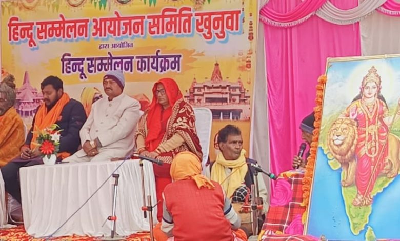 खुनुवां/सिद्धार्थनगर। भारत-नेपाल सीमा क्षेत्र खुनुवां बाजार के सरस्वती शिशु एवं विद्या मंदिर पर सोमवार को हिन्दू सम्मेलन समिति की ओर से सकल हिन्दू समाज के लिए विशाल हिन्दू सम्मेलन का आयोजन किया गया। इस दौरान राष्ट्रीय स्वयंसेवक संघ के जिला प्रचारक विशाल ने कहा कि पंच परिवर्तन से हिन्दू समाज को बदलने की योजना चल रही है। जिसे समुदाय को अमल लाने के लिए प्रेरित किया जा रहा है। उन्होंने कहा कि सामाजिक समरसता, कुटुम्ब प्रबोधन, पर्यावरण संरक्षण, स्वदेशी आचरण व नागरिक कर्त्तव्य से समाज के भीतर बदलाव आयेगा। आज हिन्दू समाज को एकजुट होने की जरूरत है। हिन्दू समाज की एकजुटता से देश परम वैभव के शिखर पर पहुंचेगा। भारत माता की दुनिया में जय-जयकार हो, इसके लिए नित साधना चल रही है। भारत-नेपाल सीमा की सुरक्षा व रखवाली के लिए समाज को आगे आने के लिए प्रेरित किया। उन्होंने कहा कि सीमा सुरक्षित है, तभी हम सब सुरक्षित हैं। ऐसे में सीमा क्षेत्र में निवास करने वाले लोगों को सदैव प्रहरी की तरह सजग रहने की जरूरत है। बांग्लादेश में हिन्दू युवक की हत्या के बाद जलाने के प्रकरण का उदाहरण देते हुए कहा कि इस घटना का प्रत्येक हिन्दू को विरोध करना होगा। दुनिया के भीतर अपनी ताकत का एहसास व समाज की एकजुटता दिखाने का समय आ गया है। अगर चुप रहे तो अपने साथ भी घटनाएं हो सकती हैं, ऐसे में एकजुटता का परिचय दें। इस दौरान विश्व हिन्दू परिषद की संयोजिका प्रमिला मिश्रा व सन्त शिवदास यादव ने भी अपना विचार रखा। कार्यक्रम की अध्यक्षता राधेश्याम मिश्रा ने की। इस दौरान खण्ड कार्यवाह पंकज श्रीवास्तव, प्रधान संघ अध्यक्ष डॉ0 पवन मिश्रा, गंगाधर मिश्रा, बहरैची बाबा, प्रधान संजय कुमार, अखिलेश वर्मा, बुद्धसागर, हरिनरायन आदि मौजूद रहें।