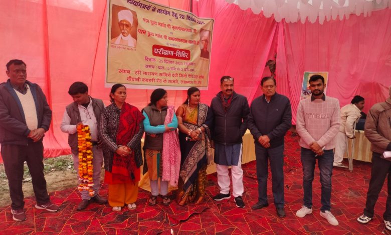 गोन्डा। गोण्डा जनपद मे भारत रत्न पंडित मदन मोहन मालवीय जी के जन्मदिवस के पावन अवसर पर दिनांक 25 दिसम्बर 2025 को समाजसेवी संस्था कल्याणम करोति एवं श्री हरि नारायण साईं मंदिर चौरिटेबल ट्रस्ट गोण्डा के संयुक्त तत्वावधान में दिव्यांगजनों को निःशुल्क सहायक उपकरण उपलब्ध कराने हेतु पंजीकरण शिविर का आयोजन किया गया।यह शिविर श्री हरि नारायण सावित्री देवी मिनी चौरिटेबल क्लीनिक, दीवानी कचहरी गेट के सामने, लखनऊ रोड, गोण्डा में सम्पन्न हुआ।कार्यक्रम का शुभारम्भ पंडित मदन मोहन मालवीय जी के चित्र पर माल्यार्पण एवं दीप प्रज्वलन के साथ किया गया।कार्यक्रम में संस्था के अध्यक्ष अभिषेक जायसवाल, संरक्षक संजय जायसवाल,कल्याणम करोति के महासचिव राष्ट्र गौरव शर्मा (लखनऊ),अश्वनी श्रीवास्तव, डॉ. राजेश श्रीवास्तव, विपिन पाण्डेय,के. बी. सिंह डॉक्टर अमित सिंह वेद प्रकाश तिवारी डॉ एसपी वर्मा सहित श्री हरि नारायण सावित्री देवी चौरिटेबल ट्रस्ट के पदाधिकारी एवं चिकित्सकगण उपस्थित रहे। कार्यक्रम का संचालन ट्रस्ट से जुड़े डॉ. राजेश श्रीवास्तव द्वारा किया गया।इस अवसर पर श्रीमती नीलम श्रीवास्तव,एवं ज्योति सिंह ने भी माल्यार्पण किया। इस अवसर पर संस्था के अध्यक्ष अभिषेक जायसवाल ने संस्था की गतिविधियों पर प्रकाश डालते हुए बताया कि दिव्यांगजनों के कल्याण एवं आत्मनिर्भरता के उद्देश्य से ट्राई-साइकिल, व्हीलचेयर,बैसाखी,श्रवण यंत्र (कान की मशीन) तथा दिव्यांग महिलाओं हेतु सिलाई मशीन प्रदान करने के लिए पंजीकरण किया गया है।शिविर में लगभग 250 दिव्यांगजनों ने पंजीकरण कराया।संस्था के संरक्षक एवं समाजसेवी संजय जायसवाल ने बताया कि इस शिविर का मुख्य उद्देश्य दिव्यांगजनों को सहयोग प्रदान कर उन्हें आत्मनिर्भर बनाना है।संस्था के अध्यक्ष ने यह भी जानकारी दी कि जिन दिव्यांगजनों का आज पंजीकरण किया गया है,उन्हें 23 जनवरी 2026, नेताजी सुभाष चंद्र बोस जयंती के अवसर पर सहायक उपकरणों का निःशुल्क वितरण किया जाएगा।कार्यक्रम में नगर के अनेक गणमान्य नागरिक उपस्थित रहे, जिन्होंने संस्था के इस सराहनीय प्रयास की प्रशंसा करते हुए अपने विचार व्यक्त किए।
