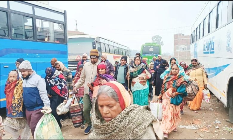 शोहरतगढ़/सिद्धार्थनगर।छंदे काले बाबू नारायणी नेत्र अस्पताल बहादुरगंज नेपाल के नेत्र चिकित्सकों द्वारा नगर पंचायत शोहरतगढ़ में आयोजित तीन दिवसीय नेत्र शिविर के दूसरे दिन 953 रोगियों की जांच की गई। चिकित्सकों ने 79 रोगियों को आपरेशन के लिए चिन्हित किया। 625 रोगियों को चश्मा वितरित किया गया। नगर पंचायत स्थित राजस्थान अतिथि भवन में आयोजित इस शिविर के पहले दिन जांच में मिले ऑपरेशन के रोगियों को नगर पंचायत अध्यक्ष उमा अग्रवाल ने बस द्वारा आंख अस्पताल बहादुरगंज (नेपाल) के लिए रवाना किया। नपं अध्यक्ष प्रतिनिधि रवि अग्रवाल ने बताया कि ऑपरेशन कराने वालों को बहादुरगंज नेपाल भेज दिया गया है।