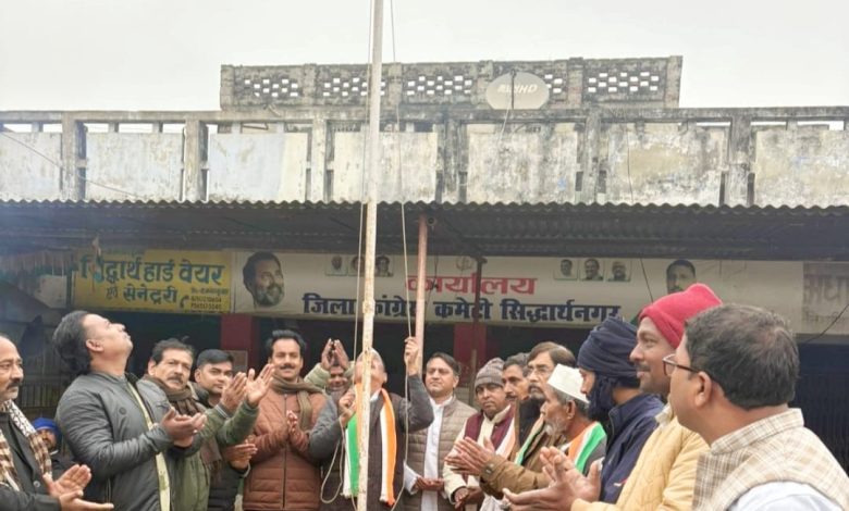 सिद्धार्थनगर।जिला कांग्रेस कार्यालय पर रविवार को भारतीय राष्ट्रीय कांग्रेस का 141वां स्थापना दिवस पूरे उत्साह और गरिमा के साथ मनाया गया। इस अवसर पर कांग्रेस जिलाध्यक्ष ने पार्टी का ध्वज फहराया तथा उपस्थित कांग्रेस जनों ने महात्मा गांधी, पंडित जवाहरलाल नेहरू, इंदिरा गांधी एवं राजीव गांधी सहित पार्टी के महान नेताओं के चित्रों पर माल्यार्पण कर उन्हें श्रद्धांजलि अर्पित की। कार्यक्रम को सम्बोधित करते हुए जिला कांग्रेस अध्यक्ष काजी सुहेल अहमद ने कहा भारतीय राष्ट्रीय कांग्रेस केवल एक राजनीतिक दल नहीं, बल्कि देश की आत्मा है। इस पार्टी ने आजादी की लड़ाई से लेकर लोकतन्त्र, संविधान, सामाजिक न्याय और भाईचारे की रक्षा तक हर मोर्चे पर ऐतिहासिक भूमिका निभाई है। आज जब देश में महंगाई, बेरोजगारी और संवैधानिक संस्थाओं पर हमले बढ़ रहे हैं, तब कांग्रेस ही आम जनता की आवाज़ बनकर संघर्ष कर रही है। जिला उपाध्यक्ष जावेद मोकीम, अनिल सिंह अन्नू एवं सादिक अहमद ने कहा कि राहुल गांधी के नेतृत्व में कांग्रेस गरीब, किसान, मजदूर, नौजवान और महिलाओं के अधिकारों की लड़ाई मजबूती से लड़ रही है और आने वाले समय में कांग्रेस जनता की उम्मीदों पर खरी उतरेगी।पूर्व प्रत्याशी देवेन्द्र कुमार गुड्डू एवं जिला सचिव ओम प्रकाश दूबे ने कहा कि आज पार्टी के स्थापना दिवस पर हम यह संकल्प लेते हैं कि हम पार्टी को मजबूत करने के लिए जी जान से जुटेंगे और जनसमस्याओं के खिलाफ सड़क से सदन तक संघर्ष करेंगे। इस अवसर पर रियाज मनिहार, पंकज चतुर्वेदी, सुदामा प्रसाद, होरी लाल श्रीवास्तव, डॉ0 प्रमोद कुमार, मुकेश चौबे, सन्तोष चौधरी, आसिफ रिज़्वी ज़ुबैर अहमद, अकरम अली, शौकत अली, श्याम किशोर पांडेय, दिलीप कुमार आजाद, आलोक कुमार, शफीक अहमद, अनीस, रितेश त्रिपाठी, जमाल अहमद, रिजवान, श्याम नारायण विज्ञानी बाबा, रिजवान, कृपा शंकर भट्ट सहित तमाम कांग्रेस कार्यकर्ता एवं पदाधिकारी उपस्थित रहे।