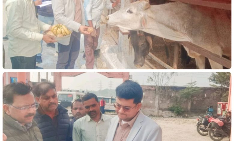 डुमरियागंज/सिद्धार्थनगर। जिलाधिकारी शिवशरणप्पा जीएन द्वारा सोमवार को कान्हा गौशाला नगर पंचायत डुमरियागंज का निरीक्षण किया गया। निरीक्षण के दौरान गौशाला में 105 गौवंश संरक्षित थे। जिलाधिकारी ने स्टाक रजिस्टर, डाक्टर/अधिकारी निरीक्षण रजिस्टर को देखा गया। जिलाधिकारी द्वारा गौवंश को गुण व केला खिलाया गया। डाक्टर द्वारा कम निरीक्षण किये जाने पर कड़ी नाराजगी व्यक्त करते उपमुख्य चिकित्सा अधिकारी का वेतन रोकने तथा मुख्य पशु चिकित्सा अधिकारी का स्पष्टीकरण प्राप्त करने का निरीक्षण दिया। जिलाधिकारी ने निर्देश दिया कि डाक्टर द्वारा गौवंश की नियमित जांच करे। गौवंश हेतु हरा चारा, भूसा, पोषाहार की व्यवस्था ठीक रखने तथा गौवंश को ठण्ड से बचाव हेतु आवश्यक व्यवस्था करने का निर्देश दिया।