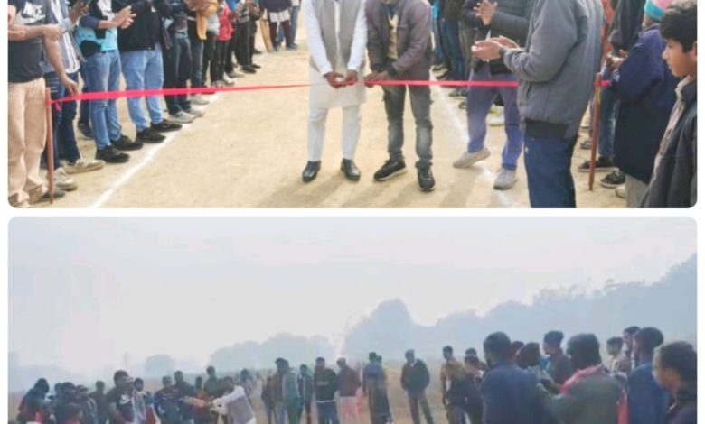 पकड़ी बाजार/सिद्धार्थनगर। विकास क्षेत्र शोहरतगढ़़ के महमूदवा ग्रान्ट में रविवार को आयोजित क्रिकेट टूर्नामेन्ट का आयोजन किया गया, जिसके बतौर मुख्य अतिथि समाजवादी पार्टी के वरिष्ठ नेता घनश्याम यादव के द्वारा उदघाटन किया गया। इस अवसर पर सपाई नेता घनश्याम यादव ने खिलाड़ियों का उत्साहवर्धन करते हुए कहा कि खेल से दिल और दिमाग दोनों स्वस्थ होता है। इसलिए समय-समय पर खेल का आयोजन होना चाहिए। इस प्रकार के क्रिकेट टूर्नामेन्ट के आयोजन आपसी भाईचारे, सद्भाव को बढ़ावा देते हैं और युवाओं में सकारात्मक ऊर्जा का संचार करते हैं। क्रिकेट मैच के दौरान दुफेड़िया ने टॉस जीतकर कोड़रा ग्रान्ट बल्लेबाजी करने का आमन्त्रित किया। पहला टूर्नामेंट मैच खेलने आई टीम ने बल्लेबाजी करते हुए निर्धारित 08 ओवरों में 101 रन बनाए। जबकि लक्ष्य का पीछा करने उतरी कोड़रा ग्रान्ट की टीम संघर्ष के बावजूद 76 रन ही बना सकी। दुफेड़िया टीम की ओर से फैसल ने बेहतरीन प्रदर्शन के लिए मैन ऑफ द मैच चुना गया। मुख्य अतिथि सपाई नेता घनश्याम यादव ने क्रिकेट टूर्नामेन्ट अयोजन के आयोजक अध्यक्ष कलाम एवं उपाध्यक्ष निसार अहमद और खिलाड़ियों सहित मैच में एम्पायर रहे उमेश चौहान व दिनेश मौर्या को बधाई एवं शुभकामनाएं दी। इस दौरान मैच को देखनें के लिए आये क्रिकेट प्रेमी सहित ग्रामीण दर्शकों से पूरा खेल मैदान भरा रहा।