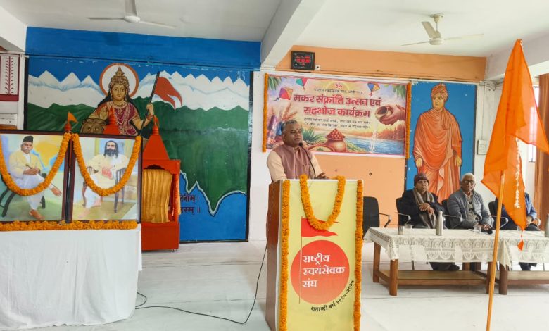 बस्ती। राष्ट्रीय स्वयंसेवक संघ बस्ती नगर ने मकर संक्रांति के अवसर पर समरसता का संदेश देने के लिए एक उत्सव और सहभोज कार्यक्रम का आयोजन किया। यह कार्यक्रम बस्ती के सरस्वती विद्या मंदिर, रामबाग में संपन्न हुआ, जिसमें स्वयंसेवकों और समाज के विभिन्न वर्गों के गणमान्य नागरिकों ने भाग लिया। कार्यक्रम के मुख्य वक्ता गोरक्ष प्रांत के प्रांत प्रचारक रमेश जी थे। उन्होंने अपने संबोधन में मकर संक्रांति के सामाजिक और सांस्कृतिक महत्व पर प्रकाश डाला। रमेश जी ने कहा कि यह पर्व केवल ऋतु परिवर्तन का नहीं, बल्कि सामाजिक एकता, समानता और पारस्परिक सद्भाव का प्रतीक है। रमेश जी ने इस बात पर जोर दिया कि समाज की वास्तविक शक्ति तब प्रकट होती है जब सभी वर्ग, जाति और भेदभाव से ऊपर उठकर राष्ट्र निर्माण में सहभागी बनते हैं। उन्होंने कहा कि समरस समाज की स्थापना ही एक सशक्त और समृद्ध राष्ट्र की नींव है। उन्होंने श्एक भारतदृश्रेष्ठ भारतश् की भावना को अपनाने का आह्वान किया। रमेश जी ने कहा कि जाति, वर्ग और भौतिक भेदों को समाप्त कर सामाजिक सौहार्द को मजबूत करना वर्तमान समय की आवश्यकता है। उन्होंने सहभोज को सामाजिक समरसता का एक प्रभावी माध्यम बताया, जिससे समाज में अपनत्व, भाईचारे और एकता की भावना प्रबल होती है। कार्यक्रम का समापन सहभोज के साथ हुआ। इस सहभोज ने सामाजिक समरसता का एक जीवंत उदाहरण प्रस्तुत किया। यह आयोजन सादगी, अनुशासन और आत्मीय वातावरण में संपन्न हुआ। कार्यक्रम की अध्यक्षता सुदर्शन मेहंदी दत्ता ने की। इस अवसर पर विभाग संघ चालक नरेंद्र भाटिया, विभाग कार्यवाह आशीष, विभाग प्रचारक ऋषि, जिला कार्यवाह नीरज, जिला प्रचारक सर्वेंद्र, नगर संघ चालक सुनील मिश्रा, नगर कार्यवाह आशीष शिवाकांत, गोविंद सिंह जी, सहित वायुंन्दन, वीरेंद्र, मुन्ना, श्रीराम, शिवेंद्र, सुबोध, प्रदीप और अन्य कई स्वयंसेवक उपस्थित रहे।