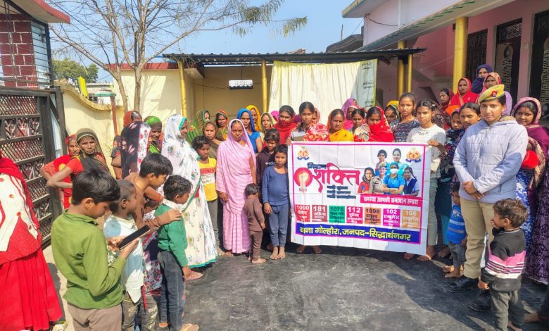 खुनियांव/सिद्धार्थ नगर। महिलाओं एवं बालिकाओं की सुरक्षा, सम्मान और स्वावलंबन के उद्देश्य से चलाए जा रहे मिशन शक्ति अभियान के तहतआज गोल्हौरा थाना क्षेत्र के ग्राम कोल्हुई में एक विशेष कार्यक्रम का आयोजन किया गया।यह कार्यक्रम पुलिस अधीक्षक सिद्धार्थनगर श्री अभिषेक महाजन के निर्देशन पर अपर पुलिस अधीक्षक प्रशांत कुमार प्रसाद के पर्यवेक्षण क्षेत्राधिकारी इटवा प्रवीन प्रकाश व गोल्हौरा थानाध्यक्ष रामदेव तथा प्रभारी निरीक्षक दीनदयाल सिंह के कुशल नेतृत्व में संपन्न हुआ।कार्यक्रम के दौरान महिलाओं व बालिकाओं को जागरूक किया गया तथा खुद के साथ होने वाले अपराध से बचने के बारे में जानकारी दी गई तथा मिशन शक्ति 5.0 स्टीकर भी चस्पा किया गया और वहां उपस्थिति लोगों को उत्तर प्रदेश सरकार द्वारा थानों पर स्थापित मिशन शक्ति केन्द्र पर जा कर अपनी समस्या को दर्ज कराने के बारे में भी जानकारी दी गई। कार्यक्रम के दौरान ग्रामवासियों को महिला हेल्पलाइन नंबर 1090, 181, 112, 108 तथा विभिन्न सरकारी योजनाओं की जानकारी दी गई। उपस्थित पुलिस अधिकारियों ने महिलाओं से आत्मरक्षा के प्रति सजग रहने और समाज में नारी सम्मान के संदेश को आगे बढ़ाने का आह्वान किया। कार्यक्रम में प्रमुख रूप से प्रभारी निरीक्षक दीनादयाल सिंह, आरक्षी रणजीत यादव, म0आ0 तृप्ति चौबे व बबीता सिंह,ग्राम प्रधान सहित एवं अन्य ग्रामवासी मौजूद रहीं।