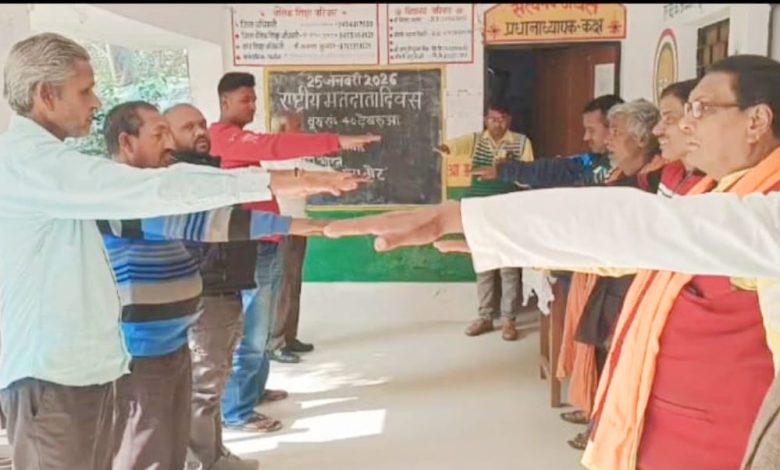 मतदान बूथ पर बीएलओ ने मतदाताओं को दिलाया शपथ