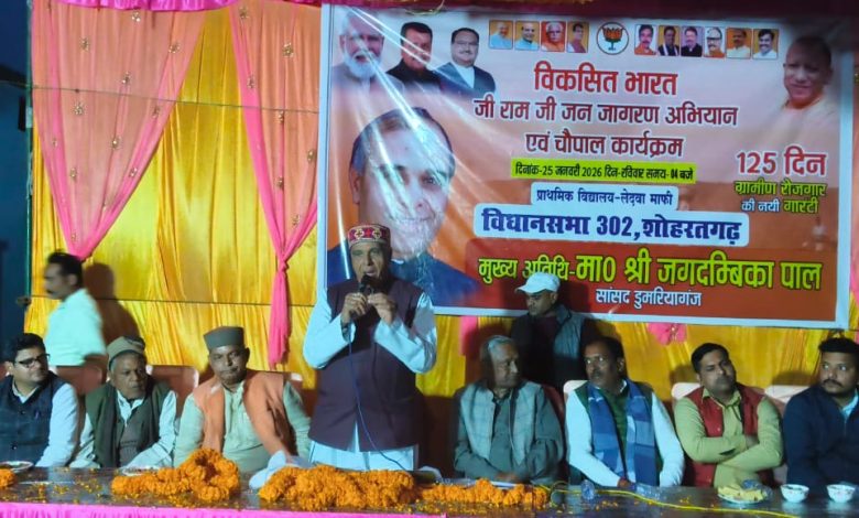 सिद्धार्थनगर।डुमरियागंज लोकसभा क्षेत्र के भवानीगंज दुर्गा मंदिर परिसर (वि.स.-डुमरियागंज), ग्राम पंचायत भरथुआ (वि.स.-बांसी) व ग्राम पंचायत लेदवा (वि.स.-शोहरतगढ़) में चौपाल कार्यक्रम का आयोजन किया गया।विकसित भारत-जी राम जी कार्यक्रम के दौरान सांसद जगदंबिका पाल ने उपस्थित जनसमूह को संबोधित करते हुए कहा कि पूर्ववर्ती सरकार के कार्यकाल (2009 से 2014) के दौरान मनरेगा योजना के अंतर्गत मजदूरों को 100 दिन की मजदूरी का प्रावधान होने के बावजूद मात्र 50.5 प्रतिशत मजदूरों को ही रोजगार उपलब्ध कराया गया, जो उस सरकार की नीतियों की विफलता को दर्शाता है। आगे कहा कि वर्तमान एनडीए सरकार गरीब, मजदूर और किसान के हितों को सर्वाेपरि रखते हुए मनरेगा योजना में व्यापक संशोधन करते हुए विकसित भारत – जी “रामजी योजना” के अंतर्गत अब 100 दिन की मजदूरी के स्थान पर 125 दिन की मजदूरी की गारंटी दी जाएगी। साथ ही यदि मजदूरों को 15 दिन के भीतर मजदूरी का भुगतान नहीं होता है, तो उन्हें बेरोजगारी भत्ता भी प्रदान किया जाएगा। साथ ही कहा कि विकसित भारत- जी राम जी योजना पीएम मोदी के 2047 तक भारत को विकसित राष्ट्र बनाने के संकल्प को साकार करने की दिशा में एक ऐतिहासिक कदम है। इस योजना के माध्यम से विकसित ग्राम सभा, विकसित जिला, विकसित प्रदेश और विकसित राष्ट्र का निर्माण होगा। यही एनडीए सरकार और पीएम मोदी का संकल्प एवं सपना है। इस अवसर मुख्य रूप से राम जियावन मौर्या प्रभारी महाराजगंज, प्रदेश कार्यकारिणी सदस्य राजेंद्र पांडे, राजेंद्र त्रिपाठी, बजरंगी वर्मा, शिवेंद्र द्विवेदी प्रधान संघ अध्यक्ष, अभय राय कार्यक्रम आयोजक, राजेश राय, बैजनाथ शुक्ला, संतोष यादव, नवीन चौरसिया, अनुपमा सिंह, मनीषा निषाद, जया निषाद, प्रिंस शर्मा, अमरेन्द्र सिंह, दिग्विजय राय, गजेन्द्र राय, सतीष शुक्ला, मनीष श्रीवास्तव, विकास सिंह, राम किंकर मिश्रा, हंसराज प्रजापति, विक्रम शर्मा, संदीप निषाद, सदावृक्ष निषाद, विकास सिंह, शिव शक्ति शर्मा मंडल अध्यक्ष, संजय दुबे, पद्माकर शुक्ला, नर्वदेश्वर मणी, शौकी लाल प्रधान, सूर्य प्रकाश पांडे, नौरंगी गुप्ता प्रधान जंगलीपुर, राजकुमार चौधरी मंडल अध्यक्ष भवानीगंज, अमरनाथ सिंह सोनू सिंह, राजेश द्विवेदी, सूर्य प्रकाश श्रीवास्तव, पप्पू जायसवाल, अखंड सिंह, अजय चौधरी, आदित्य चौधरी, विनोद कौशल, प्रवेश कौशल, भानु प्रताप सिंह, गंगाराम कौशल, कमला प्रसाद कौशल, रामचरित्र गौड़, उमाशंकर श्रीवास्तव, बंशीधर श्रीवास्तव, अतुल श्रीवास्तव, अरविंद यादव, पंकज द्विवेदी, विपिन द्विवेदी, दिनेश सिंह, मनोज यादव, अनूप सिंह, कमलेश चौरसिया, राजू पाल, यादव प्रसाद जायसवाल आदि मौजूद रहे।