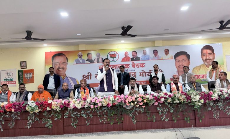 सिद्धार्थनगर। भाजपा जिला कार्यालय पर जिलाध्यक्ष कन्हैया पासवान की अध्यक्षता में आयोजित संगठनात्मक बैठक में मुख्य अतिथि उत्तर प्रदेश सरकार के उप मुख्यमंत्री केशव प्रसाद मौर्य ने पार्टी पदाधिकारियों के साथ संगठनात्मक बैठक की। उन्होंने बैठक में एसआईआर को लेकर गहन चर्चा किया एंव पदाधिकारियों को आवश्यक निर्देश दिया। उप मुख्यमंत्री ने अपने भाषण से कार्यकताओं में ऊर्जा डाल दिया। उक्त अवसर पर क्षेत्रीय अध्यक्ष सहजानंद राय,जिला प्रभारी हरि चरण कुशवाहा, सांसद जगदंबिका पाल,विधायक श्यामधनी राही,पूर्व मंत्री डॉ.सतीश द्विवेदी,पूर्व विधायक राघवेंद्र सिंह,जिला मिडिया प्रभारी निशांत पाण्डेय,जिला पंचायत अध्यक्ष प्रति.उपेंद्र सिंह,सहकारी बैंक के अध्यक्ष कुंवर विक्रम सिंह,नगर पालिका अध्यक्ष गोविंद माधव,नरेंद्र मणि त्रिपाठी,साधना चौधरी,राम कुमार कुंवर,लाल जी त्रिपाठी जिला पदाधिकारी,मंडल अध्यक्ष गण उपस्थित रहें।