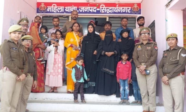 सिद्धार्थनगर।जनपद सिद्धार्थनगर की महिला थाना सिद्धार्थनगर की प्रभारी निरीक्षक भाग्यवती पाण्डेय द्वारा अपनी टीम के साथ रविवार को 07 जोड़ों के बीच मनमुटाव को दूर करते हुए एक साथ विदा किया गया। वरिष्ठ पुलिस अधीक्षक सिद्धार्थनगर डा0 अभिषेक महाजन के कुशल नेतृत्व में एवं अपर पुलिस अधीक्षक सिद्धार्थनगर प्रशान्त कुमार प्रसाद के कुशल निर्देशन में व क्षेत्राधिकारी सदर विश्वजीत सौरयान के कुशल पर्यवेक्षण में रविवार को महिला थाना सिद्धार्थनगर पर स्थापित मिशन शक्ति केन्द्र मे प्रभारी निरीक्षक महिला थाना भाग्यवती पाण्डेय द्वारा 07 परिवारों को एक साथ विदा किया गया। वहीं निम्न 07 परिवारों को बिखरने से बचाने मे प्रभारी निरीक्षक श्रीमती भाग्यवती पाण्डेय व काउंसलिंग टीम में उप निरीक्षक रामनारायण शुक्ला, महिला हेड कांस्टेबल आशा गौड़, महिला हेड आरक्षी रीना रावत, महिला आरक्षी प्रियंबदा सिंह, महिला आरक्षी संगीता गौतम, महिला आरक्षी प्रगति राय, महिला आरक्षी शिवानी सिंह का महत्वपूर्ण योगदान रहा। इस दौरान 07 परिवारों में सकीना पत्नी वहाब साकिन डुमरिया लाल थाना मिश्रौलिया, खुशबू भट्ट पत्नी सरयू सकीं भटपुरवा थाना शिवनगर डिडई, मदीना पत्नी गुलाम हुसैन साकिन हटवा थाना शोहरतगढ़, राजकुमारी पत्नी सूर्य प्रकाश साकिन शंकरपुर थाना सोनहा जनपद बस्ती, अंजनी पत्नी अशोक साकिन रसूलपुर थाना मोहाना, किरण पत्नी विजय साकिन बेलवा थाना खेसरहा, हसीना पत्नी अमीर शाह साकिन कछुलिया थाना उसका बाजार जनपद सिद्धार्थनगर है।