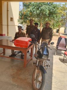 माची थाना प्रभारी निरीक्षक भैया एस पी सिंह ने बताया कि क्षेत्र के सुअरसोत तिराहे पर चेकिंग किया जा रहा था कि खलियारी से आ रही एक बाइक सवार युवक पुलिस को देखकर मोटरसाइकिल घुमाकर भागने का प्रयास किया लेकिन चौकन्ना पुलिस ने तुरंत पकड़ लिया। जांच किया गया तो चालक के पास कुल 43.920 लीटर अबैध अंग्रेजी व देशी शराब बरामद किया गया। युवक से पुछताछ में 21 वर्षीय विकास कुमार खरवार पुत्र रमाशंकर खरवार निवासी ग्राम लोंदा थाना लोहरा जिला कैमूर भभुआ बिहार का बताया।