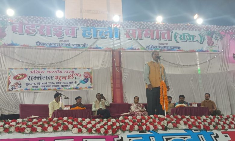 बहराइच। बहराइच होली समिति (रजि.) के तत्वावधान में आयोजित होलिकोत्सव कार्यक्रम के अंतर्गत शहर के घंटाघर प्रांगण में अखिल भारतीय हास्य कवि सम्मेलन ‘झुनझुना’ का आयोजन किया गया। देर रात तक चले इस कार्यक्रम में देश के विभिन्न हिस्सों से आए कवियों ने हास्य, व्यंग्य और ओजपूर्ण काव्य पाठ से श्रोताओं को मंत्रमुग्ध कर दिया। कार्यक्रम का शुभारंभ गुरुवार शाम लखनऊ से आईं कवयित्री हेमा पांडेय द्वारा मां शारदे की वंदना से किया गया। इस अवसर पर होली समिति की ओर से सभी आमंत्रित कवियों को अंगवस्त्र भेंट कर सम्मानित किया गया। शाम होते ही दूर-दराज से आए श्रोताओं से घंटाघर प्रांगण खचाखच भर गया। कार्यक्रम की अध्यक्षता समाजसेवी निशा शर्मा ने की, जबकि मंच संचालन रीवा (मध्य प्रदेश) से आए कवि अमित शुक्ला ने किया। कोटा से आए कवि भूपेंद्र राठौर ने अपनी पंक्तियोंकृ “अब रावलपिंडी, ढाका दोनों कायदे में हैं, ट्रंप मरे या खमनोई भारत फायदे में है३” सुना कर खूब तालियां बटोरीं। बाराबंकी के हास्य-व्यंग्य कवि प्रदीप महाजन ने कहाकृ “निज कार्य की हर योजना अब टालनी होगी, और धूल पशु बाजारों की खंगालनी होगी, बच्चों को मिले शुद्ध दूध इसलिए मित्रों, अध्यापकों को भैंस भी अब पालनी होगी।” दिल्ली से आए हास्य कवि सुनहरी लाल ‘तुरन्त’ ने अपनी चुटीली प्रस्तुति से माहौल को खुशनुमा बना दियाकृ “साज बिना हर राग अधूरा लगता है, बिन कोयल के बाग अधूरा लगता है, होली कितने ही लोगों से खेलो, पर बिना भाभी के फाग अधूरा लगता है।” लखनऊ की कवयित्री हेमा पांडेय ने राधा-कृष्ण पर आधारित भावपूर्ण पंक्तियां सुनाकर श्रोताओं को भावुक कर दियाकृ “धूप में धूप से सांवरी हो गई, वेदना से विकल बांसुरी हो गई, कृष्ण मथुरा से वापस जो आए नहीं, याद में राधिका बावरी हो गई।” महेश्वर (मध्य प्रदेश) के कवि नरेन्द्र अटल ने अपनी ओजपूर्ण कविताकृ “मातृभूमि की गौरवगाथा जीवन भर हम गाएंगे३ इसकी माटी और रक्त का जन्म-जन्म का नाता है, गोत्र हमारा राष्ट्र धर्म, कुलदेवी भारत माता है।” सुना कर श्रोताओं में देशभक्ति का जोश भर दिया। कार्यक्रम के अंत में समिति अध्यक्ष दीपक प्रकाश सोनी ‘दाऊ जी’ ने सभी कवियों, अतिथियों, श्रोताओं और सहयोगियों के प्रति आभार व्यक्त किया। इस अवसर पर महामंत्री सुमित खन्ना, हेमंत मिश्रा, उमाकांत शुक्ला, राघवेंद्र नाथ गुप्ता, मीडिया प्रभारी सचिन श्रीवास्तव, कृष्ण मोहन गोयल, शिव शरण कसेरा, आनंद कुमार, अमित टंडन, कन्हैया सोनी, आशीष कंसल, हेमा निगम, मनोज मिर्ची, सत्येंद्र रस्तोगी, राजेश रस्तोगी, कृष्ण गोपाल तायल, सुधाकर मिश्रा, योगेंद्र श्रीवास्तव, मनीष रस्तोगी सहित सैकड़ों लोग देर रात तक कार्यक्रम में मौजूद रहे।