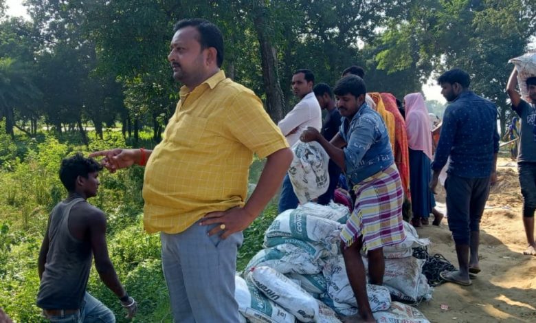 देखा बोरे में मिट्टी डालकर कर डाल रहे थे। जिस जगह बोरे में मिट्टी डालकर पानी का रिसाव रोकने का प्रयास किया जा रहा था। उसके बावजूद भी पानी का रिसाव कम नहीं हो रहा था जिस पर विष्णु जायसवाल ने ठेकेदारों व उपस्थित अधिकारियों से मोरंग, गिट्टी या ईट का रोड़ा डालने को कहा ठेकेदार वा अधिकारियों द्वारा यह लापरवाही देख कर जायसवाल ने ठेकेदार और अधिकारियों पर नाराजगी भी जाहिर किया इस दौरान उनके साथ भाजपा के तमाम कार्यकर्ता साथ मौजूद रहे ।