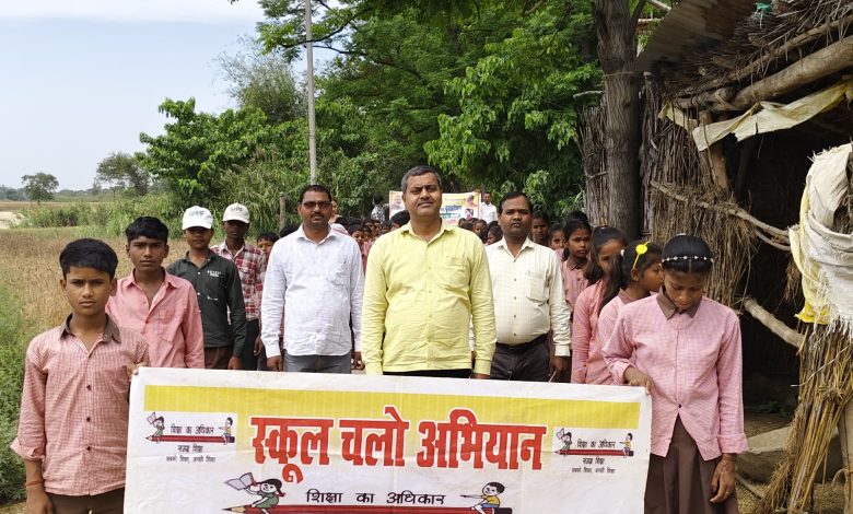 गांव में गूंजा नारा,शिक्षा है़ अधिकार हमारा