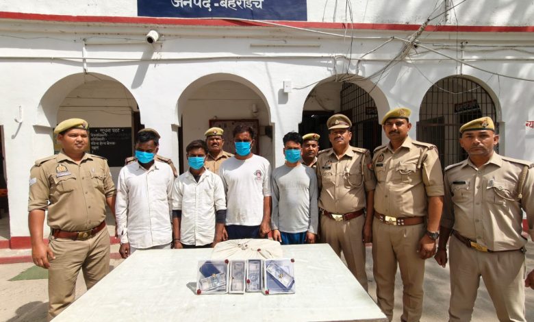 बहराइच। थाना खैरीघाट पुलिस ने एक बड़ी सफलता हासिल करते हुए कलर प्रिंटर से ₹500 के जाली नोट छापकर बाजार में चलाने वाले 4 अभियुक्तों को गिरफ्तार किया है। पुलिस ने इनके पास से ₹500 के 23 जाली नोट (₹11,500) और एक प्रिंटर बरामद किया है।