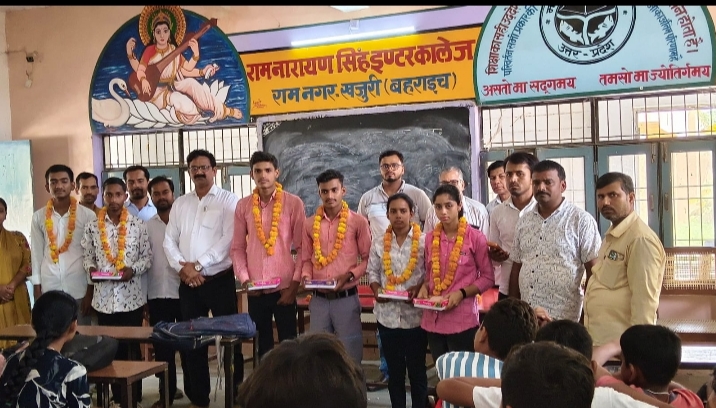 पयागपुर बहराइच। रामनगर खजुरी स्थित रामनारायण सिंह इंटर कॉलेज में मेधावी छात्रों के सम्मान में एक भव्य कार्यक्रम का आयोजन किया गया। इस अवसर पर विद्यालय परिवार व स्थानीय गणमान्य लोगों की उपस्थिति में छात्रों को माल्यार्पण कर स्मृति चिन्ह व पुरस्कार देकर सम्मानित किया गया।