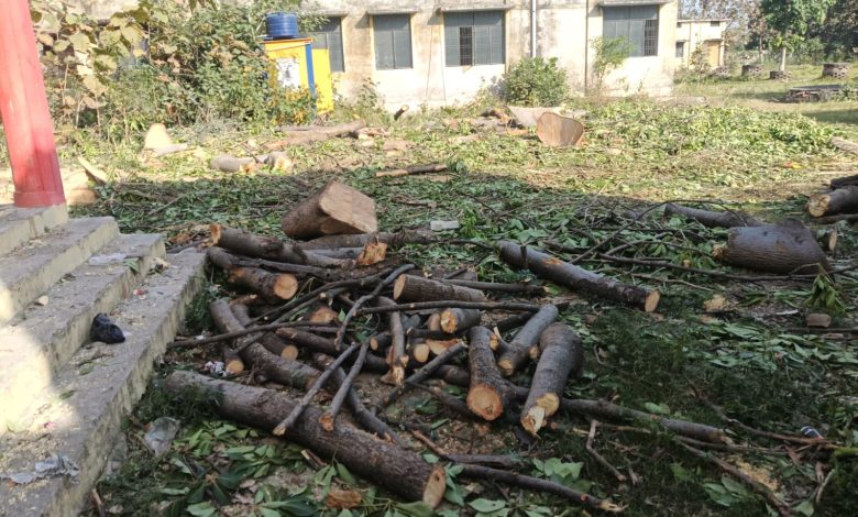 तीन दिन पूर्व विद्यालय परिसर में वर्षों पुराने सेमल के पेड़ को कार्यवाहक प्रधानाचार्या द्वारा ठेकेदार की मिलीभगत से बिना किसी वैधानिक प्रक्रिया के कटवा दिया गया। बताया जा रहा है कि पेड़ को बेच भी दिया गया।