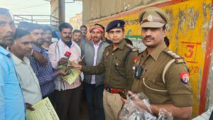 *क्षेत्राधिकारी यातायात अमित कुमार द्वारा सड़क सुरक्षा माह के अंतर्गत रॉबर्ट्सगंज थाना क्षेत्रान्तर्गत बढ़ौली चौराहा एवं घोरावल रोड एवं रोडवेज परिसर मे चालकों को गुलाब का फूल देकर सड़क सुरक्षा के बारे मे प्रोत्साहित एवं जागरूक किया तथा यातायात नियमों के पालन हेतु दिलायी गयी शपत-* क्षेत्राधिकारी यातायात अमित कुमार द्वारा राष्ट्रीय सड़क सुरक्षा माह के अन्तर्गत रॉबर्ट्सगंज थाना क्षेत्रान्तर्गत बढ़ौली चौराहा एवं घोरावल रोड मे चालकों एवं रोडवेज बस चालकों को गुलाब का फूल देकर सड़क सुरक्षा के बारे मे प्रोत्साहित एवं जागरूक किया तत्पश्चात उपस्थित लोगों से अपील करते हुये उनको यातायात नियमों के बारे में जागरूक कर यातायात नियमो के पालन करने हेतु शपत दिलायी गयी तथा पम्पलेट बांटा गया । साथ ही साथ यह भी बताया गया कि बिना सीट बेल्ट/हेलमेट लगाये वाहन न चलाये, वाहन चलाते समय मोबाइल से बात न करें, नो पॉर्किंग में वाहन खड़ी न करें, नशा कर वाहन न चलाये, सड़क नियमों का पालन करनें इत्यादि के बारे में भी जागरूक किया गया । इस दौरान एआरटीओ सोनभद्र, प्रभारी निरीक्षक यातायात व अन्य अधिकारीगण/एवं कर्मचारीगण मौजूद रहे ।