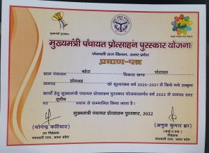 उत्कृष्ट कार्य हेतु ग्राम प्रधान को मिला प्रमाणपत्र, सम्मानित, स्वजनों में हर्ष, करमा/सोनभद्र