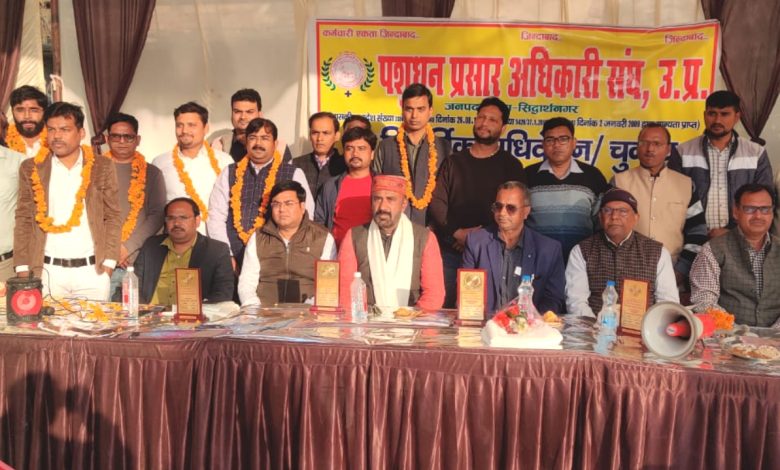 सिद्धार्थनगर। सोमवार को पूर्व निर्धारित कार्यक्रम के अनुसार पशुधन प्रसार अधिकारी संघ, सिद्धार्थनगर का वार्षिक अधिवेशन पशु चिकित्सालय, बासी के प्रांगण में संपन्न हुआ।